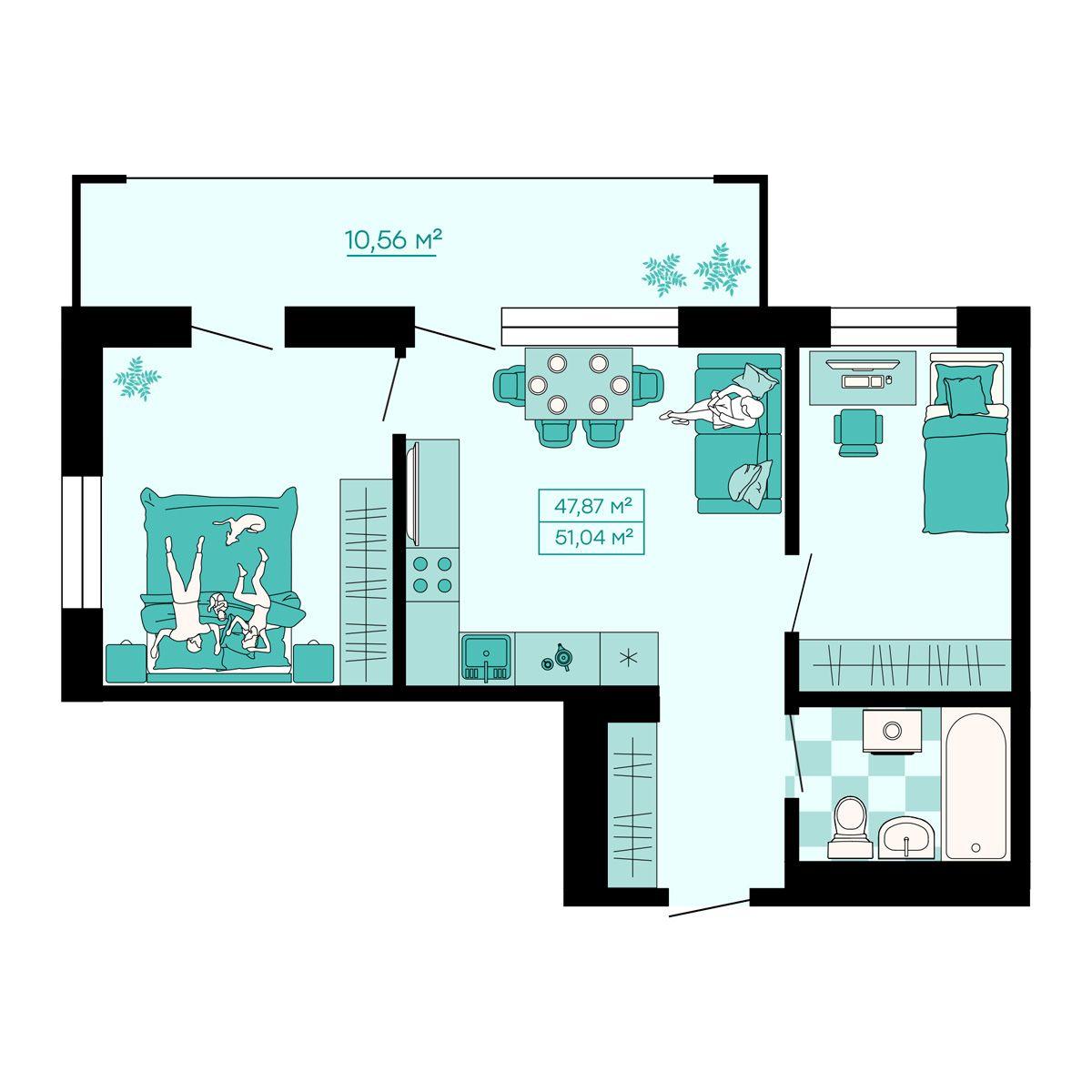 - 51,04 м²