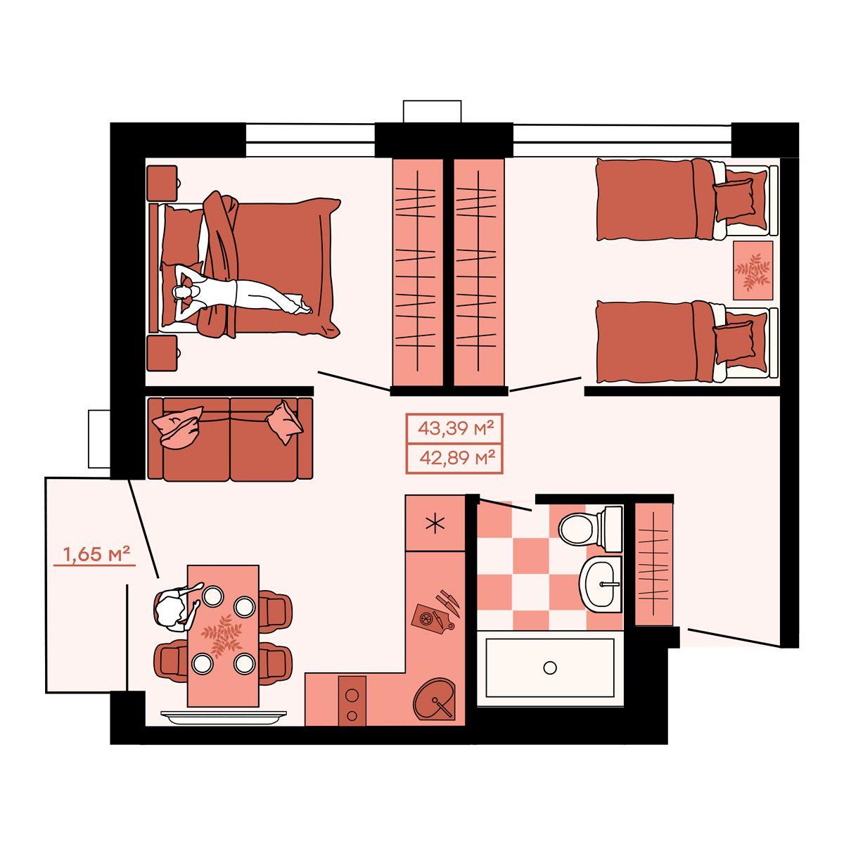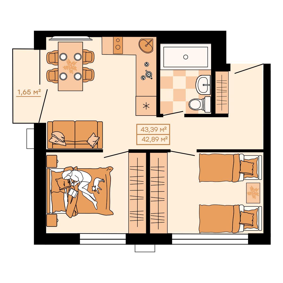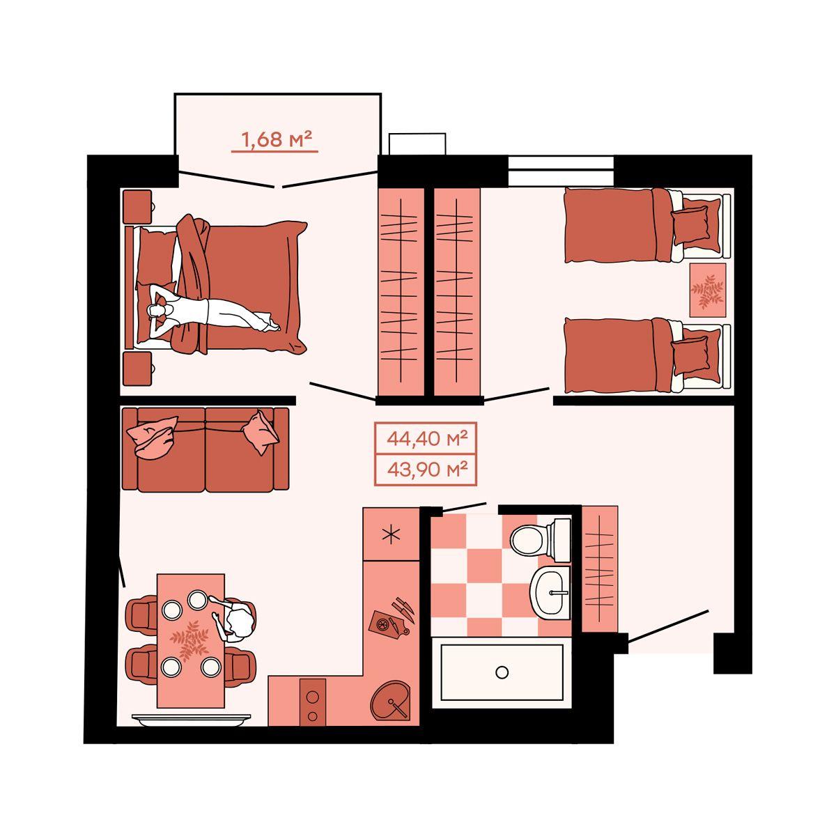 - 44,4 м²