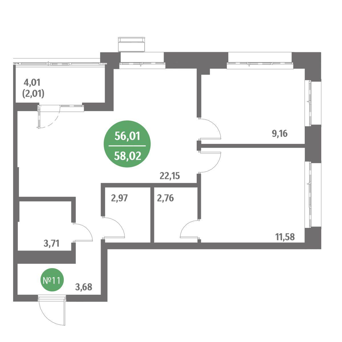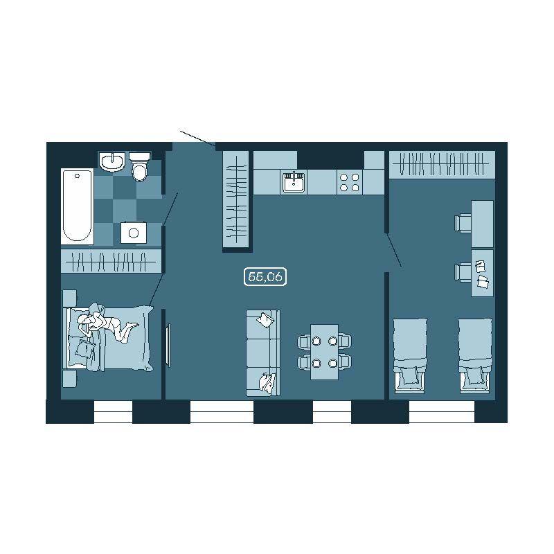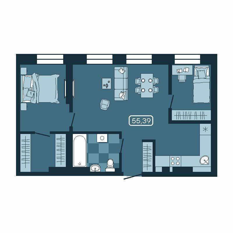 - 55,58 м²