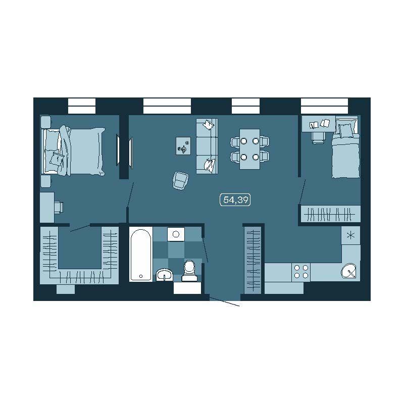 - 55,58 м²