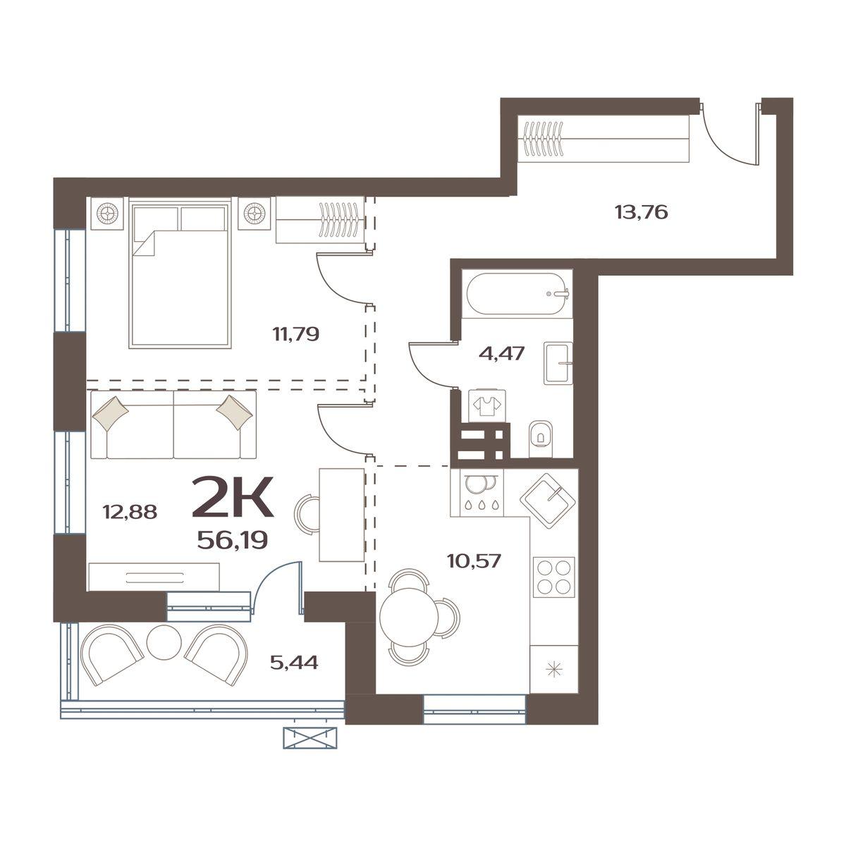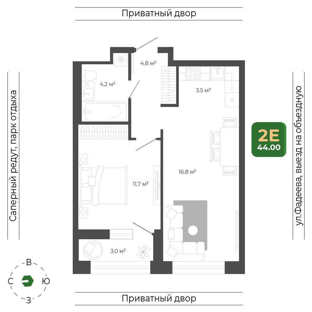 2 комнатная квартира