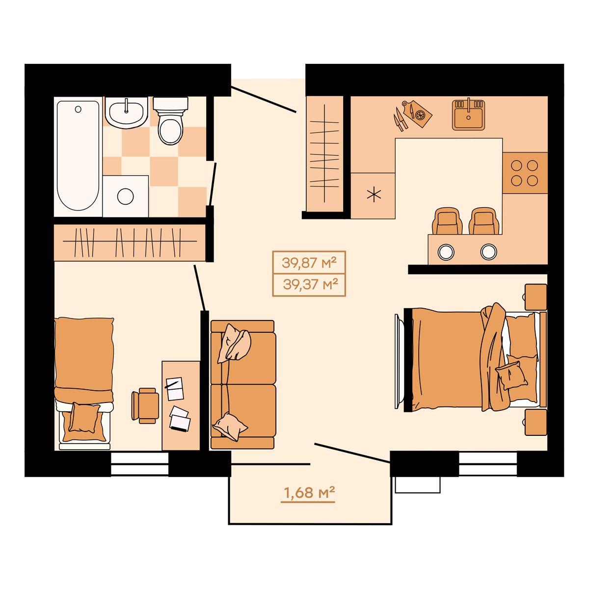 - 40,69 м²
