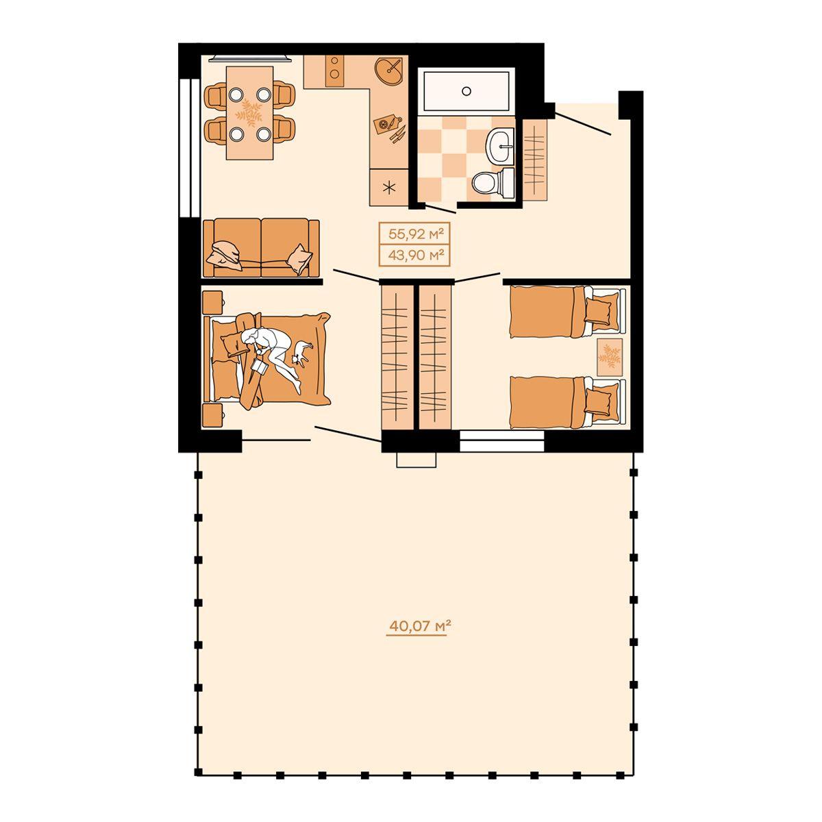 - 40,6 м²