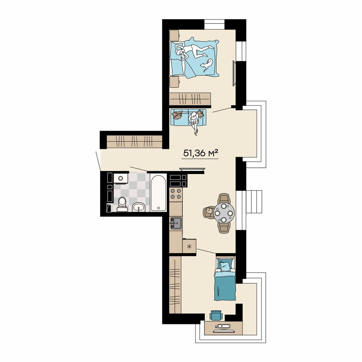- 52,96 м²