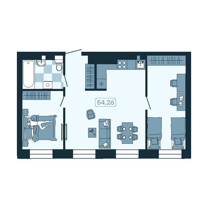 - 54,63 м²