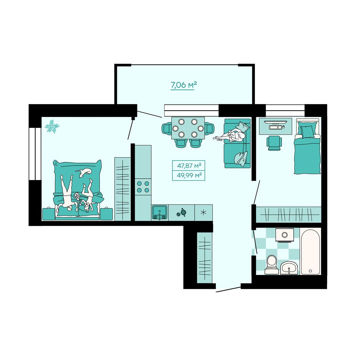 - 54,33 м²