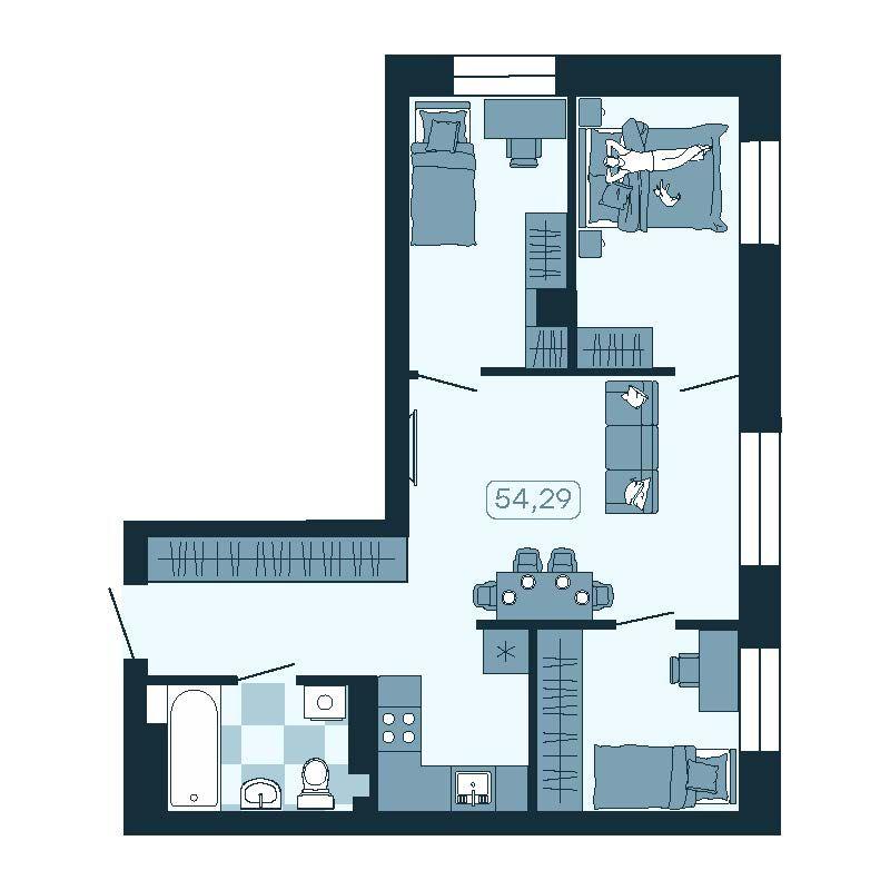 - 53,89 м²