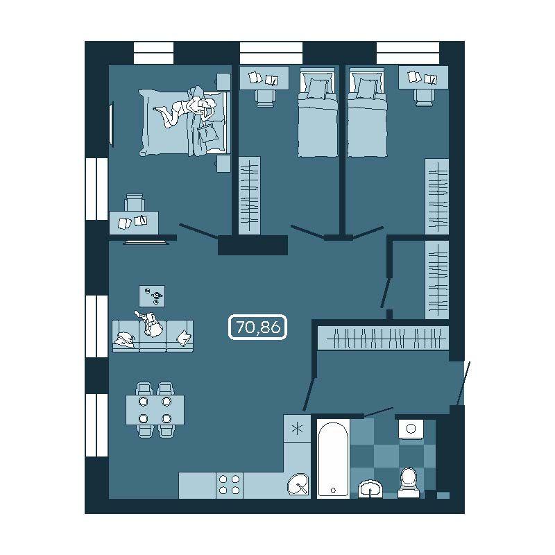 - 70,41 м²