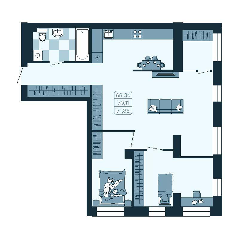 - 70,41 м²