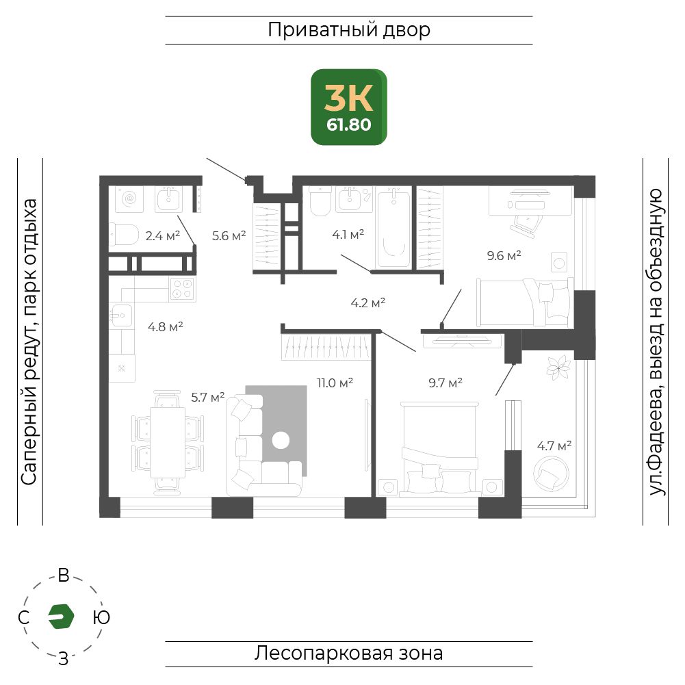 3 комнатная квартира