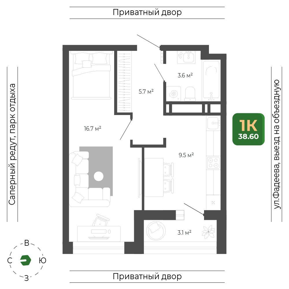 1 комнатная квартира