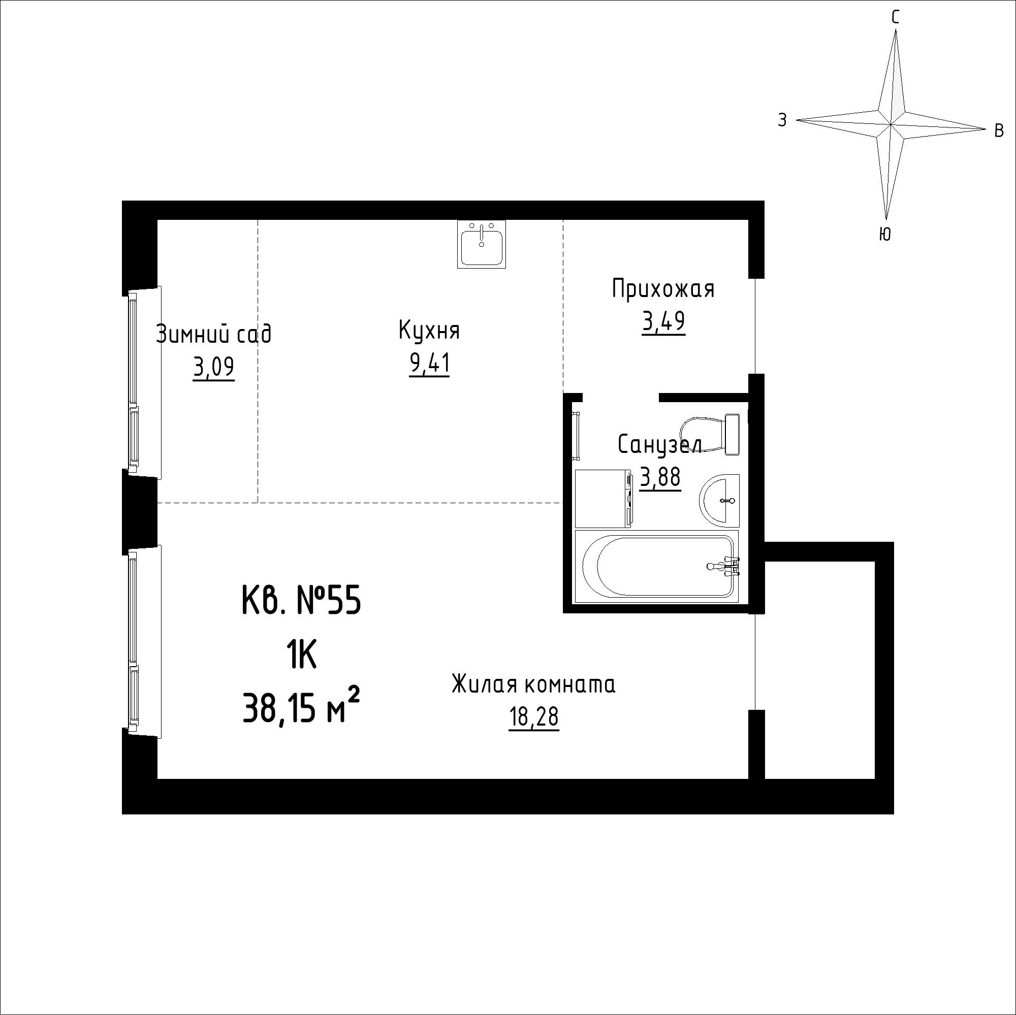 - 38,15 м²