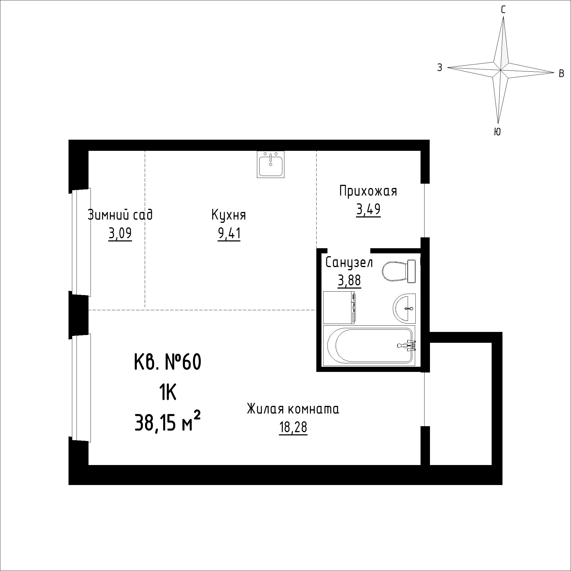 - 38,15 м²