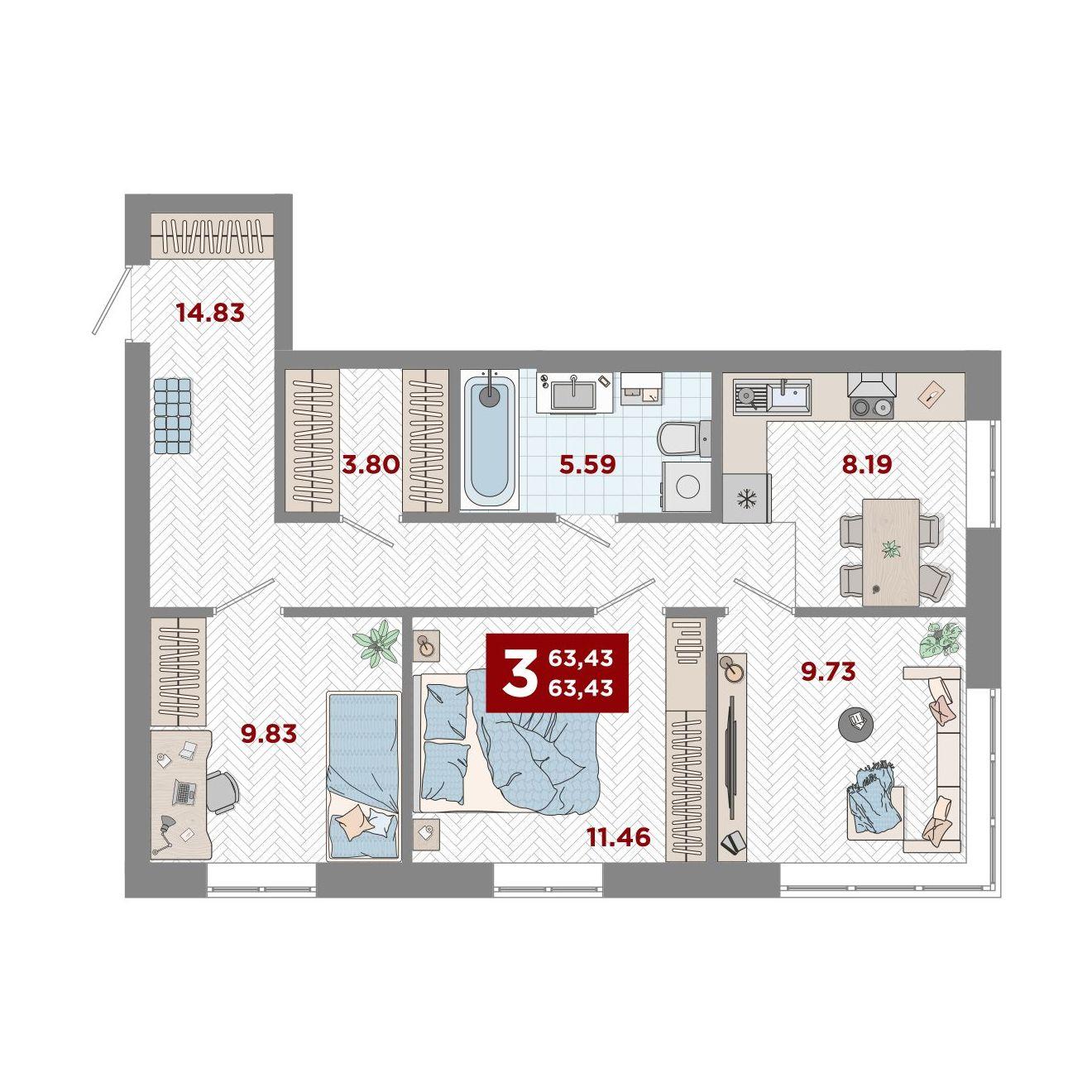 3 комнатная квартира