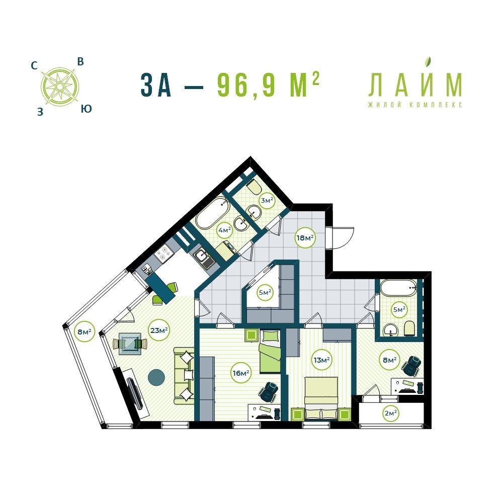 3-я Поселковая улица, 17Первомайский район- Площадь