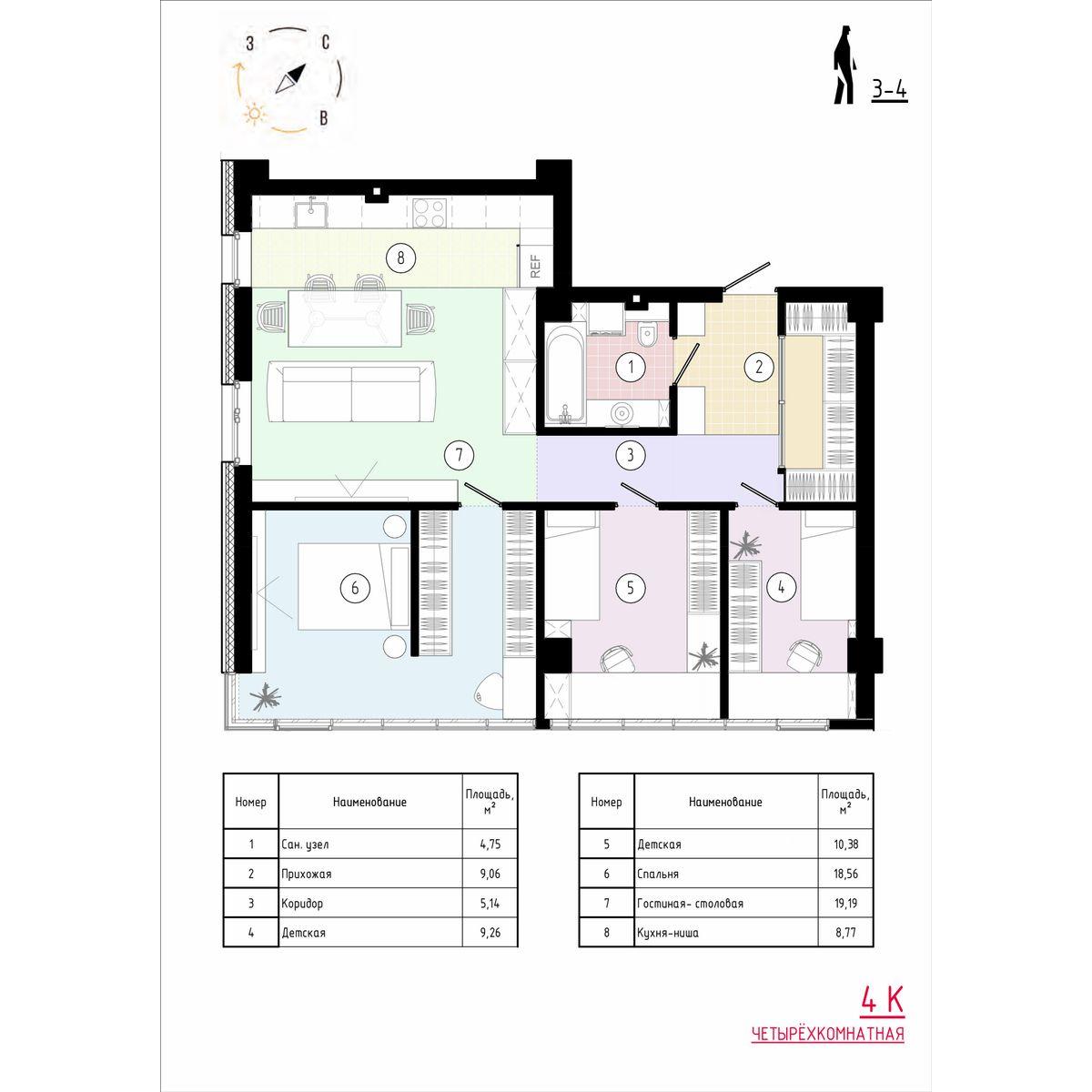 4 комнатная квартира