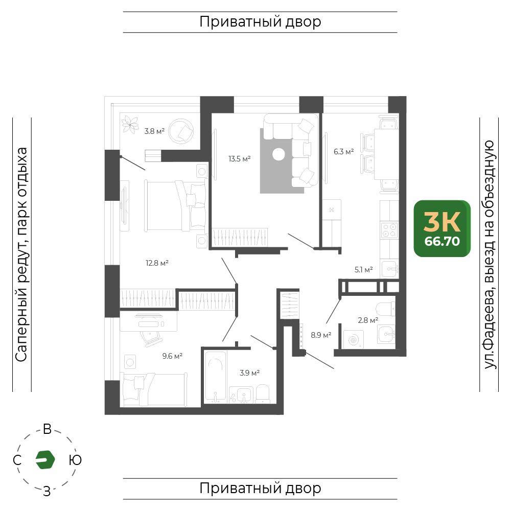 3 комнатная квартира