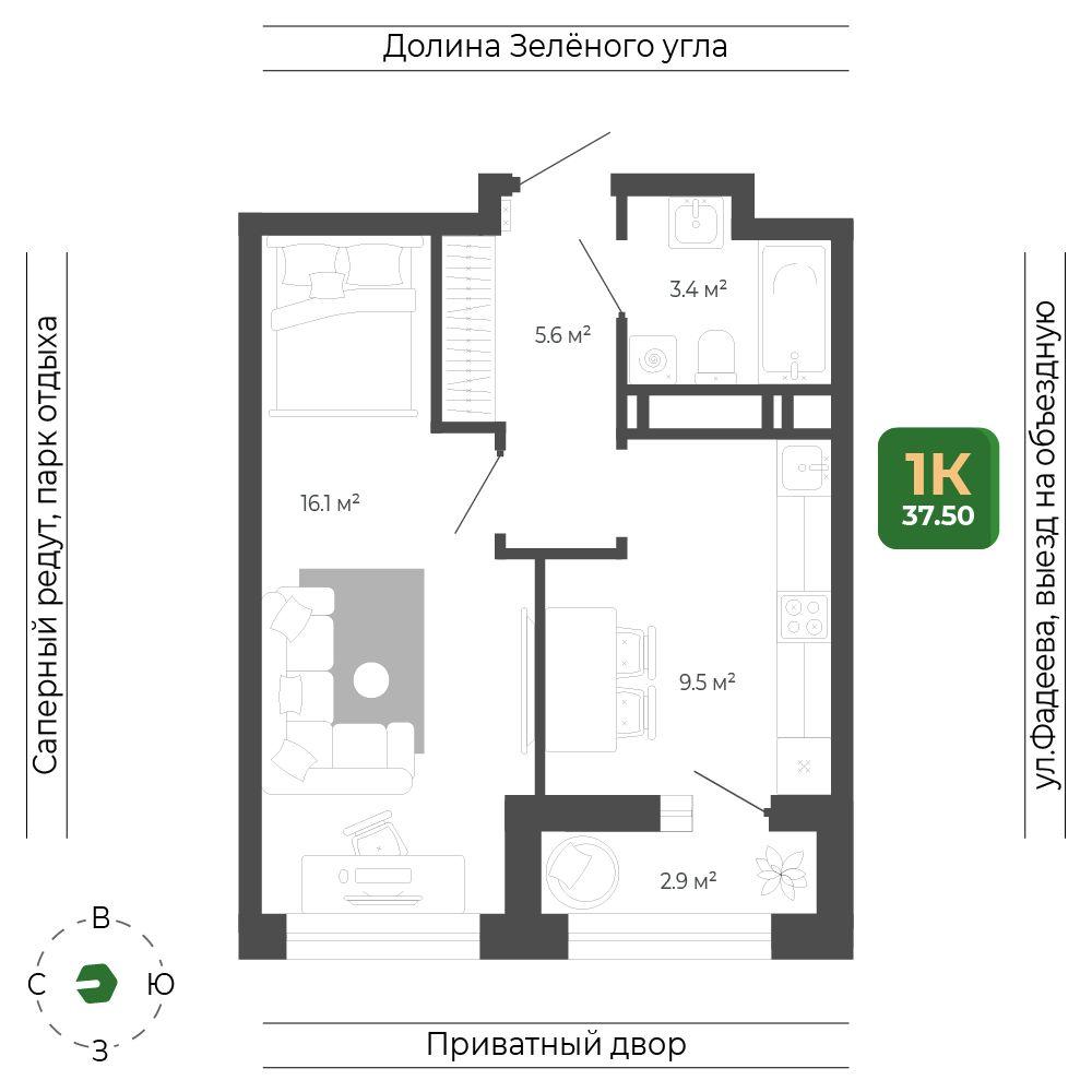 1 комнатная квартира