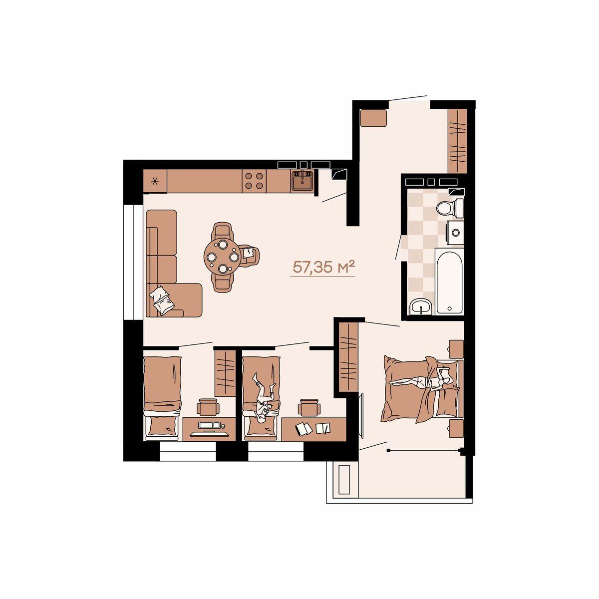 - 55,28 м²
